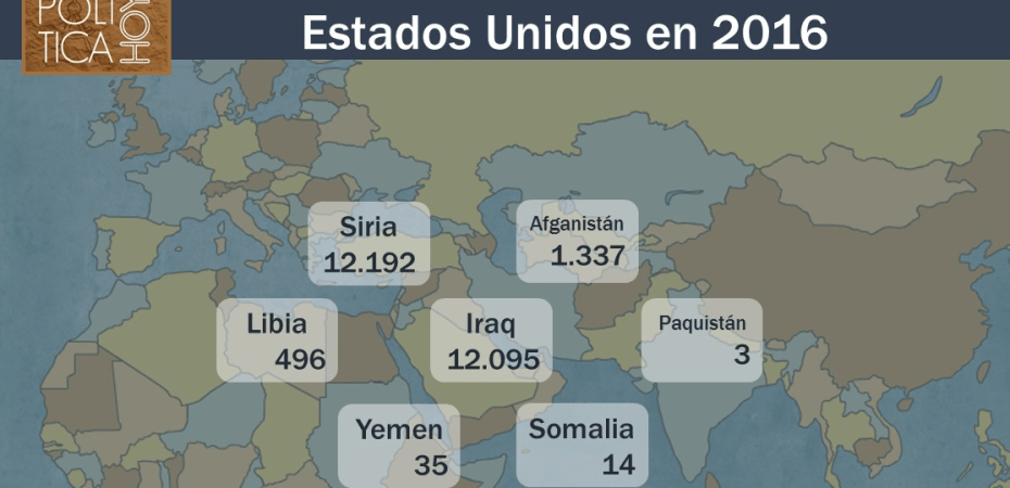 La zona gris, una nueva concepción de conflicto bélico – Ni guerra, ni paz, ni todo lo contrario. Sirva de ejemplo la conducta de Estados Unidos a lo largo de 2016. Sin haber declarado la guerra a ninguno de estos 7 estados, las fuerzas armadas estadounidenses lanzaron al menos 26.172 bombas sobre ellos [1], según datos publicados por el Pentágono [2]. Excepto en los casos de Paquistán, Afganistán e Iraq, donde EEUU cuenta con el permiso del gobierno receptor para actuar militarmente, estos bombardeos violan flagrantemente la legislación internacional, ya que no han sido autorizados en votación por el Consejo de Seguridad de las Naciones Unidas, único órgano supranacional con la autoridad para aprobar la violación de la soberanía nacional de un estado.
